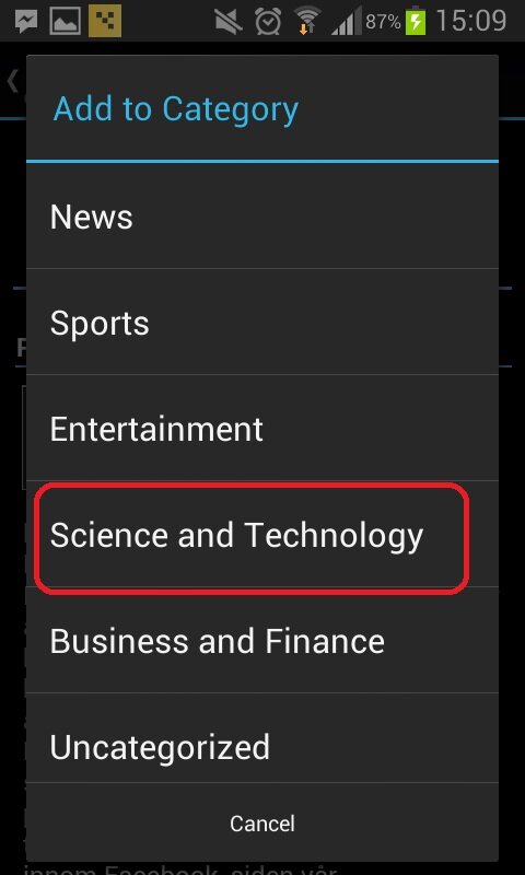 Velg kategorien du vil lagre podcasten under (vi foreslår "Science & technology"). IKKE trykk "Save"