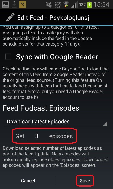 Velg hvor mange av de siste episodene du vil at appen skal laste ned og trykk "Save". Ferdig!